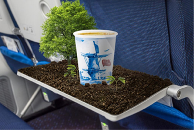 Dado que el biofuel tampoco son la panacea y que el medioambiente celebra cualquier iniciativa, por pequeña que sea, el grupo Air France-KLM promueve a bordo sus aviones el reciclaje y el catering responsable. En el caso de aerolínea holandesa, el pescado tiene eco-etiquetas MSC (Marine Stewardship Council) y ASC (Aquaculture Stewardship Council) y solicita a sus proveedores no utilizar aceite de palma o utilizar el certificado como RSPO si no hay otra alternativa. Además, el café que sirve cuenta con la garantía 100% UTZ y el pan y el vino son orgánicos.