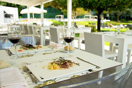 También se puede probar su exquisita cocina. A partir del 1 de mayo, y desde las 12 de la mañana hasta las 23:00 horas, ininterrumpidamente, se pueden degustar en su terraza exterior y al aire libre desde sabrosas tapas como “rabas de calamar” o “huevos rotos con patatas, jamón y trufa”; hasta platos más contundentes como un “solomillo de ternera a la plancha a las 3 mostazas con milhojas de patatas” o algo más ligero como una “ensalada caprese”. Para los golos@, y aunque sea verano, permítete la “torrija de pan brioche con helado”.