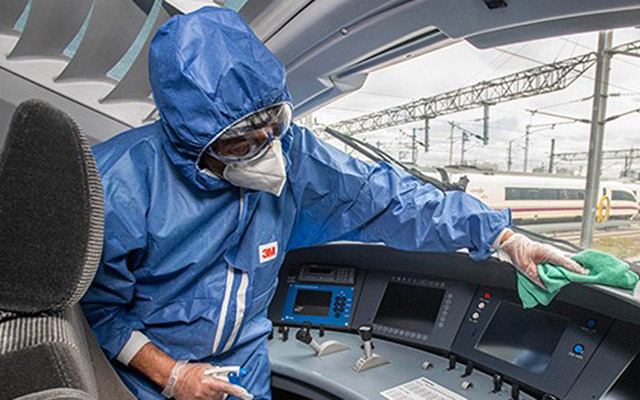 El mantenimiento de las condiciones higiénicas a bordo comienza antes de la salida del tren, con la higienización de los puntos de contacto en el acceso a los coches, como botoneras, asideros, marcos de puertas, etc. En el interior, y durante el trayecto, los operarios se ocupan de las medidas sanitarias en las zonas comunes. Además, en las paradas intermedias repasan la mesa o mesita del respaldo de los asientos que quedan libres, los apoyabrazos de las butacas y los cabezales.