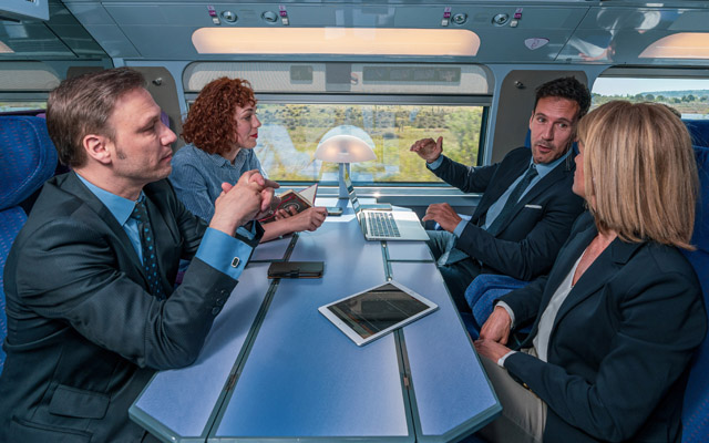 Entre su oferta destaca la confortabilidad, la puntualidad, la interconexión y la ventaja de llegar al centro de las ciudades. Los clientes MICE lo tienen muy fácil. « El confort propuesto en nuestros trenes y los servicios como el wifi gratuito permiten a los viajeros de negocio trabajar durante el viaje casi como en su despacho y, por supuesto, relajarse también o disfrutar de nuestro servicio de cafetería. Es posible reservar hasta coches enteros para viajes de empresa o reuniones a bordo. Incluso en ciertos trenes disponemos de una pequeña sala con ocho plazas para más confidencialidad para estos tipos de clientes, equipada con pantallas que permiten momentos reales en los que compartir y trabajar  en equipo», explica Phillippe María, director de Ventas y Productos de Elipsos.