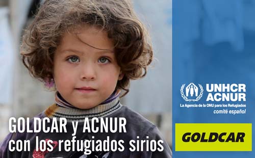 Goldcar se suma al Comité español de ACNUR en su proyecto de ayuda a las personas desplazadas por el conflicto sirio. Con este motivo, iniciará este mes de junio una campaña de microdonativos para recaudar fondos a través de su plataforma ecommerce, de forma que los clientes que realicen el proceso de reserva de alquiler de un coche a través de la web de Goldcar podrán realizar un donativo al finalizar el pago del servicio.