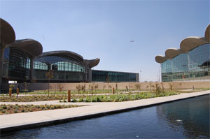La nueva terminal tiene 103.000 m² y ha sido diseñada por el prestigioso arquitecto Norman Foster, con un proyecto inspirado en las tiendas beduinas. El edificio está diseñado para permitir a los pasajeros el fácil acceso a la sala de embarque y al área de compra desde el punto de control de seguridad.