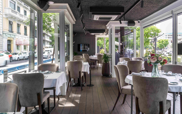Está ubicada en una de las principales arterias de la capital, entre Nuevos Ministerios y María de Molina, con el telón de fondo de los jardines del Museo de Ciencias Naturales y un sofisticado sistema de mamparas que la insonorizan de la calzada.