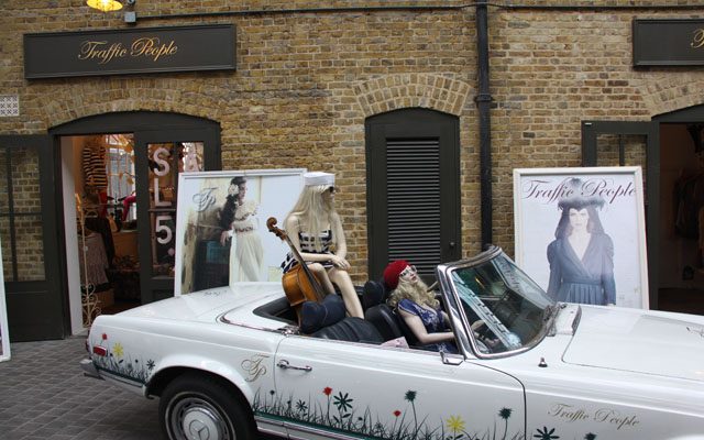 A un par de manzanas atraviesa la afamada Brick Lane, que ha ido ganando puntos últimamente entre el moderneo de la ciudad. La calle y sus alrededores son un espectáculo, sobre todo los domingos por la tarde, tanto por los individuos/as que la frecuentan, como por las tiendas de ropa que la pueblan, donde uno puede salir ataviado en plan vintage de pies a cabeza, eso sí, a costa de dejarse un riñón y parte del otro en la caja, o como un ciberpunk antes de echarse algo de comida al estómago en alguno de sus numerosos restaurantes indios o tomarse un refrigerio en sus sorprendentes y personalísimos cafés. El barrio entero parece gritar: Muerte a la estandarización.