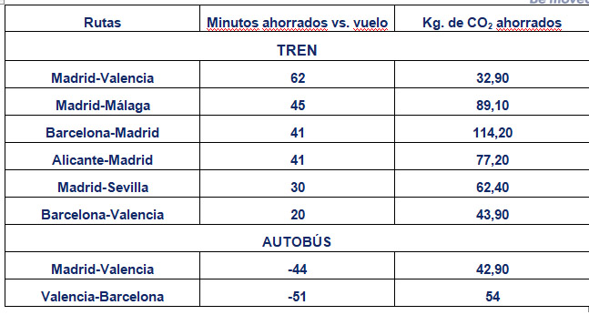 Viajar en tren o autobús no sólo supone un ahorro de tiempo en muchas ocasiones, sino que también tiene un impacto positivo en el medio ambiente. Por ejemplo, viajar en tren en la ruta Barcelona – Madrid permite ahorrar 41 minutos y 114,20 kg de dióxido de carbono, según afirma Omio.