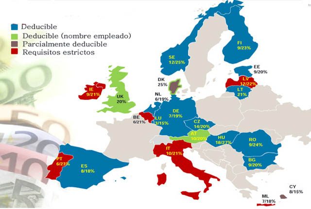 Muchas empresas con alto gasto en viajes desconocen o pasan por alto que las notas de gasto de varios países europeos se pueden deducir total o parcialmente, entre ellos el Reino Unido, Irlanda, Alemania, Italia, Benelux, Austria, Suiza, Dinamarca, Suecia, Finlandia, Noruega, Hungría, Rumanía, Bulgaria, Lituania, Letonia y Estonia. También hay acuerdos de reciprocidad con Australia y Canadá.