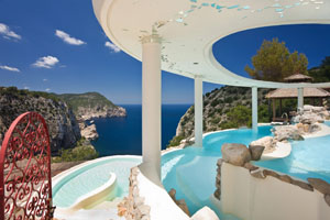 Cuenta con varias piscinas y un increíble spa exterior, en el que el agua fluye como una cascada hacia el mar.Sobre un acantilado de 180 metros de altura, el hotel es un balcón sobre el Mediterráneo, en el noroeste de la isla, rodeado de un entorno natural envidiable.Ambiente cálido y exótico, con un restaurante decorado con la temática de “Las mil y una noches”.