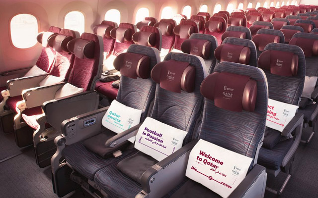 La aerolínea oficial de la Copa Mundial de la FIFA Qatar 2022 presenta una cabina especial, inspirada en el mundo del fútbol, incluirá amenity kits de edición limitada de la FIFA, cojines de recuerdo, auriculares, menús especiales y ropa de descanso inspirada en camisetas de fútbol.