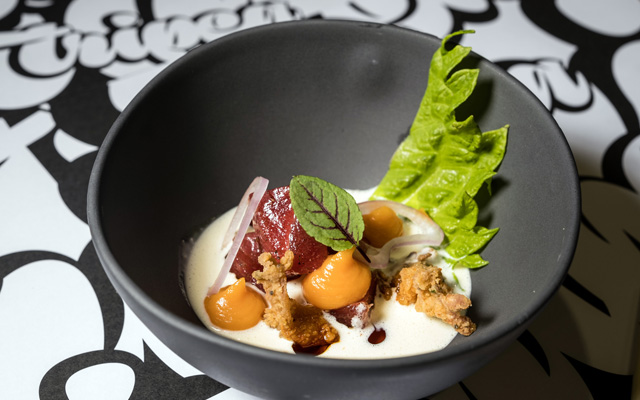 Las nuevas incorporaciones de la carta, servida de miércoles a sábados, se sumaron a alguna de las creaciones más populares de la edición anterior, recuperadas por aclamación popular, como el ceviche saltado de langostinos o la tarta de queso y maracuyá, sin olvidar la croqueta de ají de gallina, aunque en su versión 2.0, con mahonesa de aceituna botija y nuez garrapiñada. Lo dicho, un verdadero gozo.