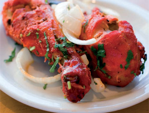 Como la mitad de los hindúes, los que profesan la religión hindú en la India, son vegetarianos y la otra mitad no toma carne de ternera; mientras que los musulmanes, algo más del 10%, suelen preferir el cordero, lo que más se consume al estilo tandoori es el pollo. Fuera de la India es más común la ternera.
