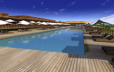 También hay zonas de reuniones, restaurante ecológico, instalaciones deportivas, espacios de salud y bienestar, etc. Entre todos destaca la Carpa Zen, con 600 m2 de espacio útil y capacidad para unas 400 personas sentadas. Asímismo, cuenta con una piscina exterior, otra con olas cubierta y una zona donde practicar escalada, deportes de aventura, cicloturismo o tiro con arco.